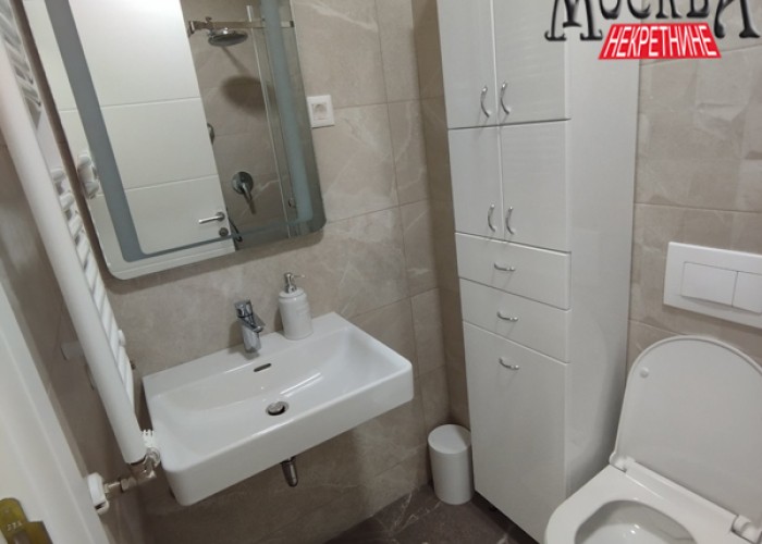 Izdaje se NOV- (do sada neuseljen) kompletno namešten jednoiposoban stan od 37m2 u ul. Bulevar Vuka Karadzića. Stan se nalazi na 2.spratu u zgradi sa liftom. Struktura stana: predsoblje, dnevni boravak, kuhinja sa trpezarijom, jedna spavaća soba, kupatilo i terasa. Grejanje je sa kalorimetrima na gas.