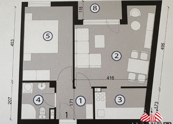 1. STAN od 46,09m2- prizemlje- cena iznosi 1.600 eura+pdv